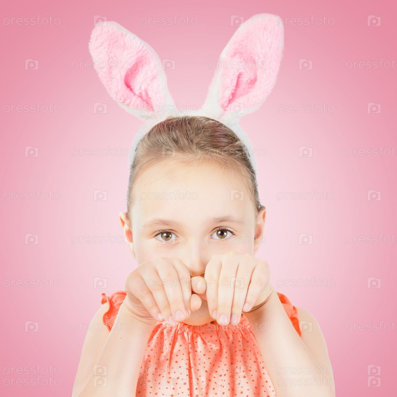 Девушка, одетая в Пасхальный кролик уши