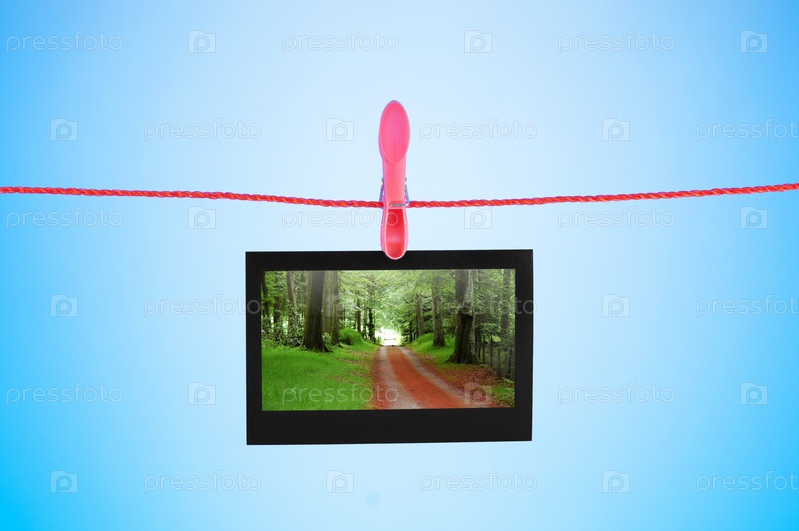 Карточка с фотографией природы висит на прищепке