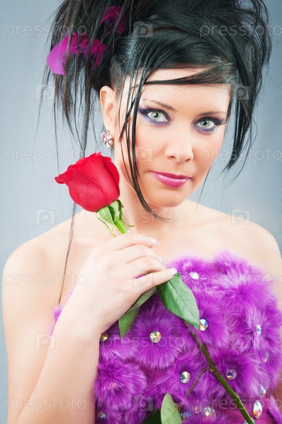 Портрет эффектной брюнетки с розой