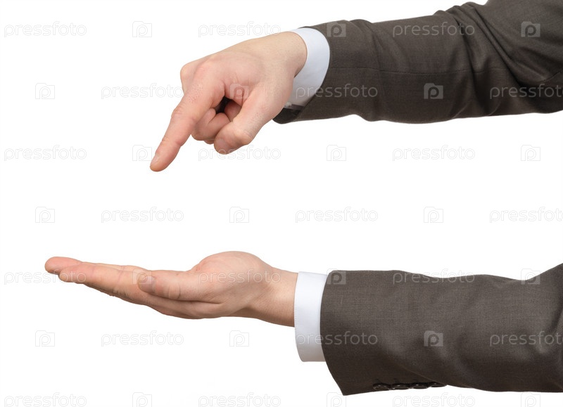 Мужчина показывает пальцем на ладонь