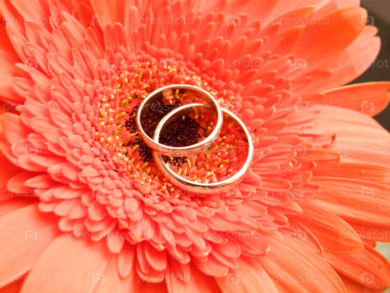 Два обручальных кольца лежат в центре цветка