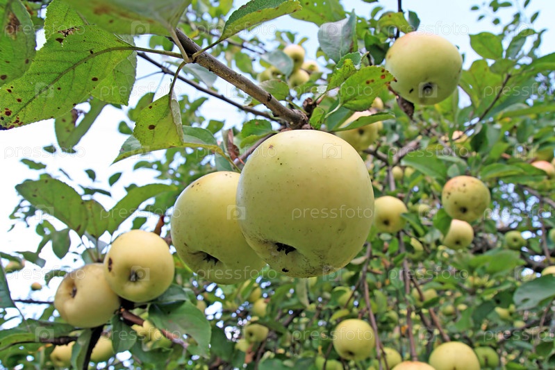 Спелые яблоки в саду