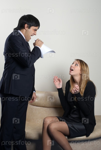 Деловой мужчина кричит на женщину