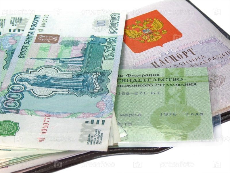 Российский паспорт, пенсионное свидетельство и деньги