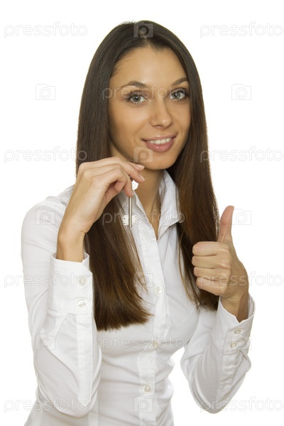 Девушка с ключами на белом фоне