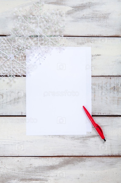 Чистый лист бумаги на деревянный стол с ручкой