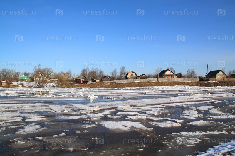 Ледоход на реке близ деревни