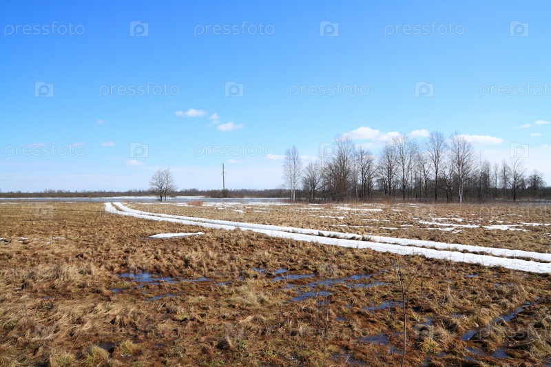 Снежная весенняя дорога на поле