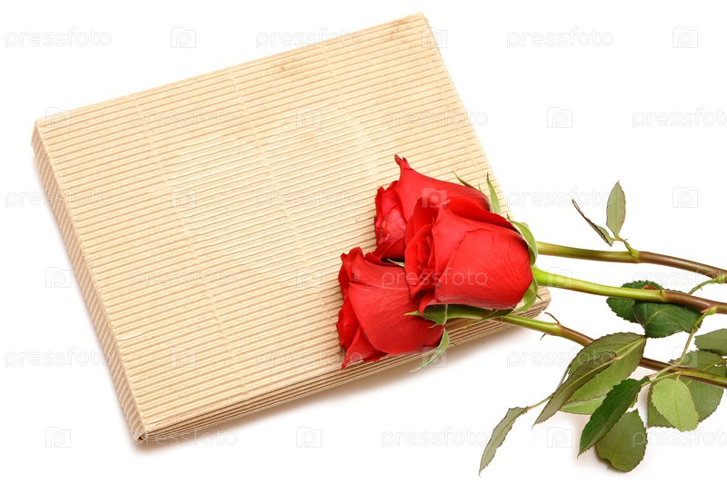 Красные розы и подарочная коробка с сердцем на белом фоне
