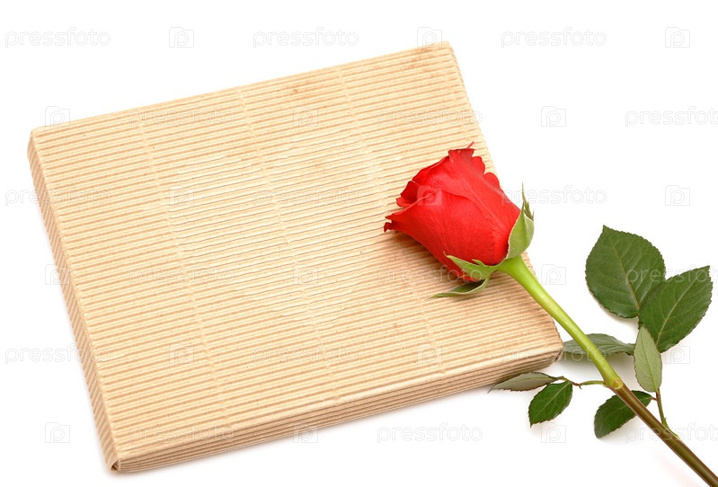 Красные розы и подарочная коробка с сердцем на белом фоне