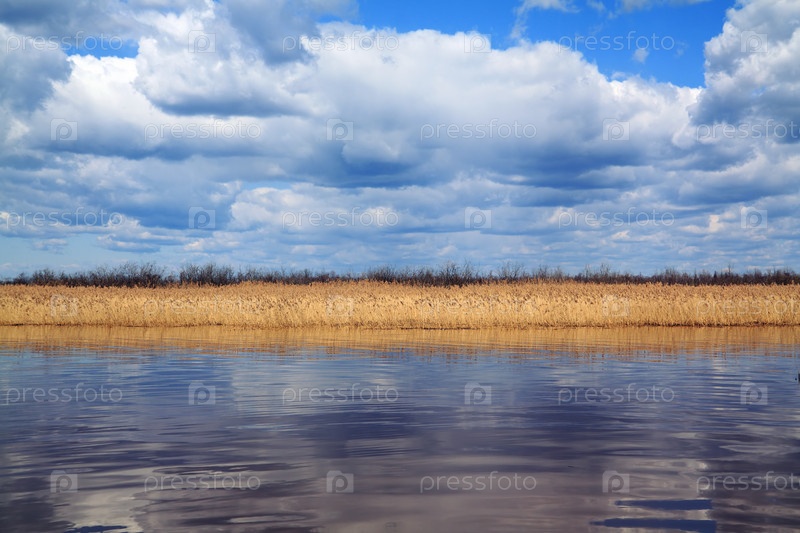 Желтая полоса тростника на озере
