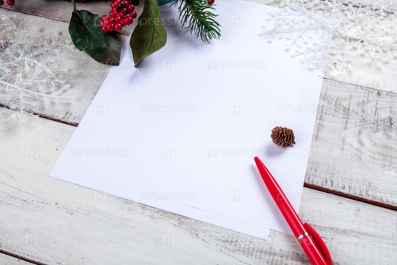 Чистый лист бумаги на деревянный стол с ручкой