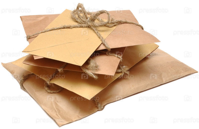 Конверты, обвязанные бечевкой на белом фоне