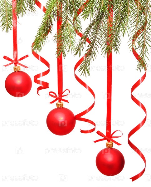 Новогодние шары с лентами на белом фоне