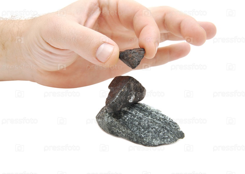 Человеческая рука и несколько камней на белом фоне