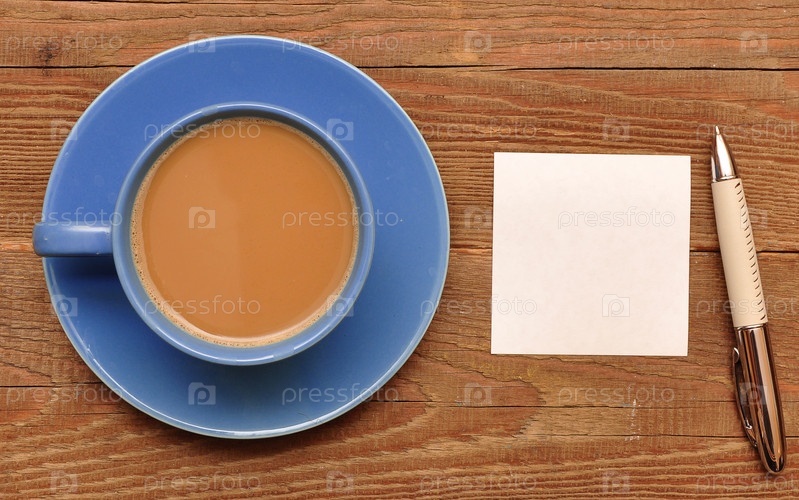 Чашка кофе и листок бумаги на столе