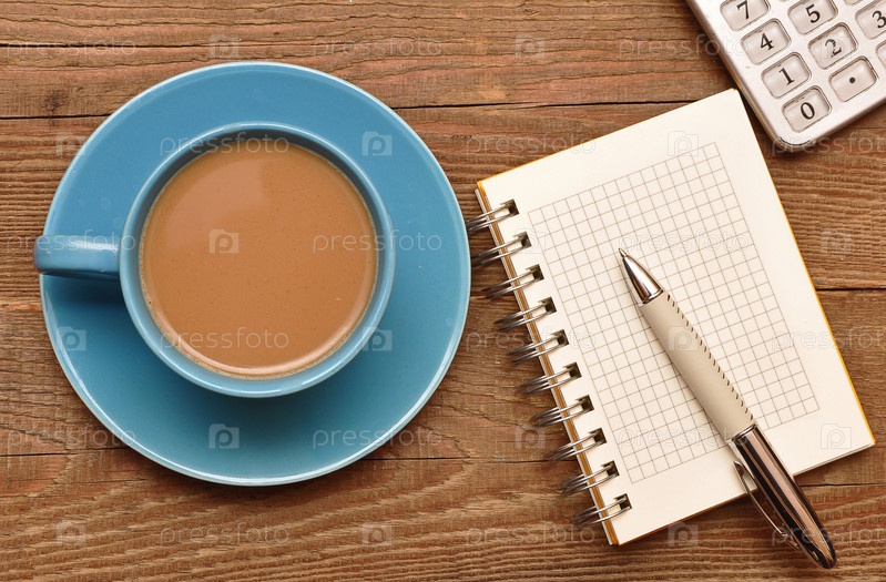 Чашка кофе и блокнот на столе