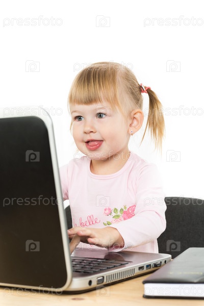 Милая маленькая девочка с ноутбуком