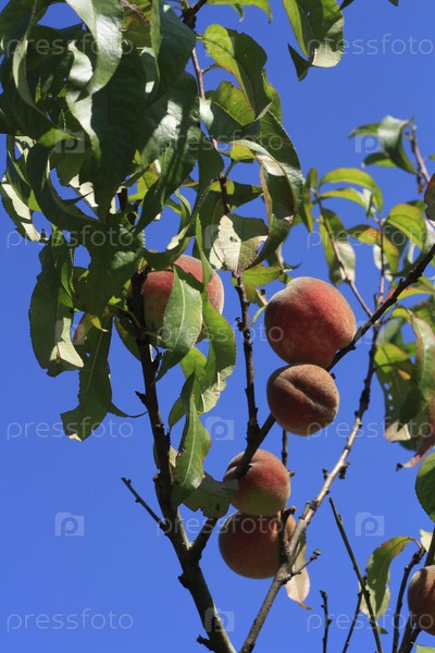 Персиковое дерево на фоне голубого неба
