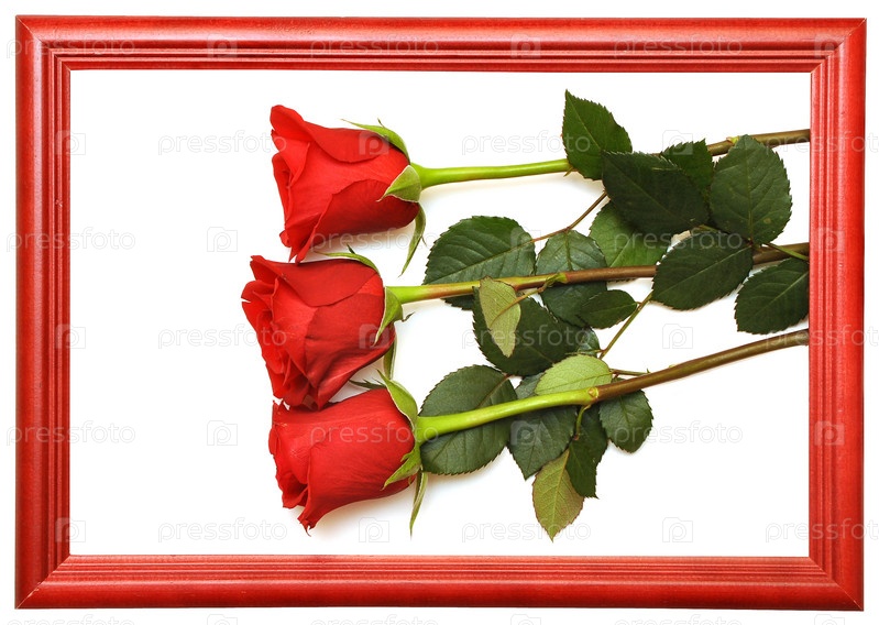 Красные розы в рамке на белом фоне