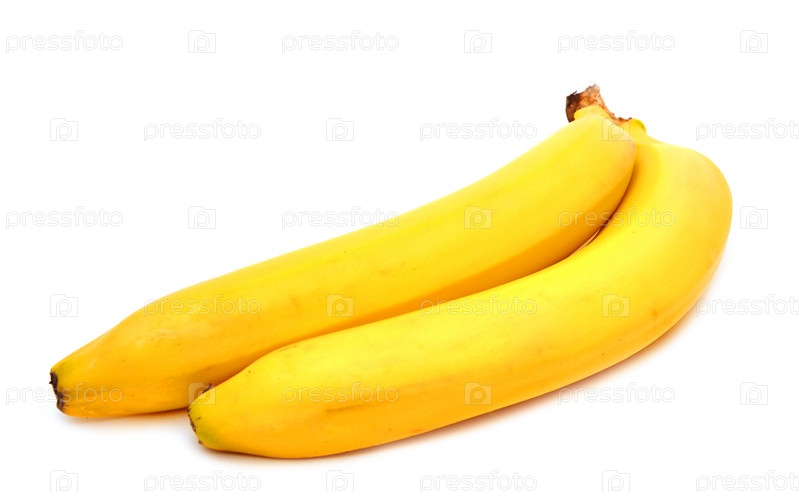 Два зрелых банана на белом фоне