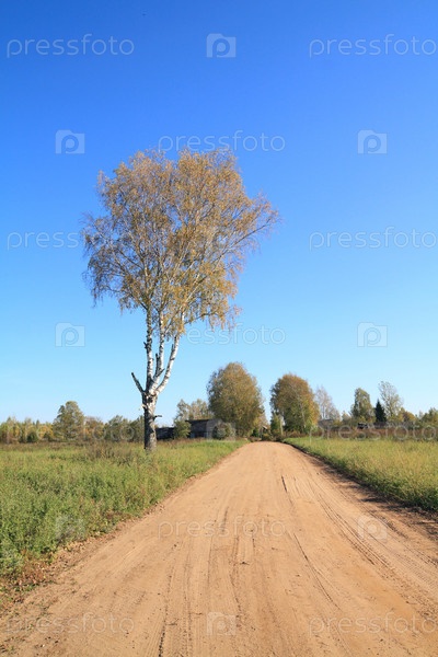 Старая береза у сельской дороги