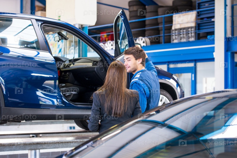 Механик показывает клиенту машину