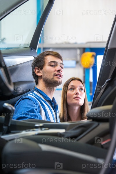 Механик показывает клиенту машину