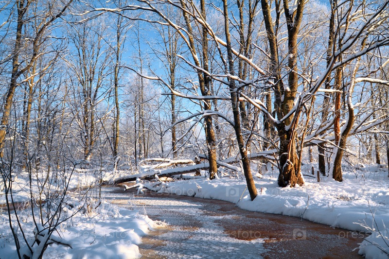 Заснеженный лес на берегу реки