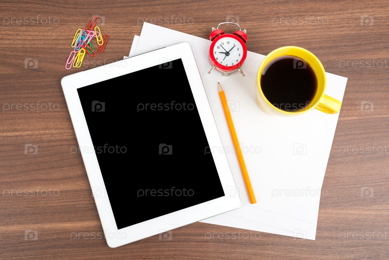 Планшет с бумаги и будильник