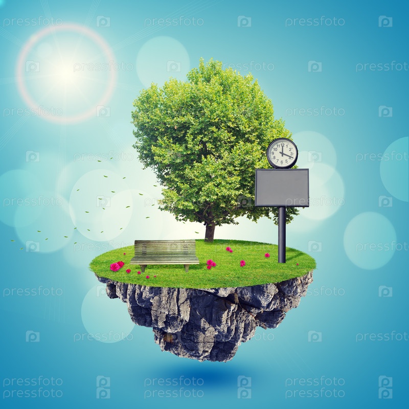 Остров с деревом и цветами