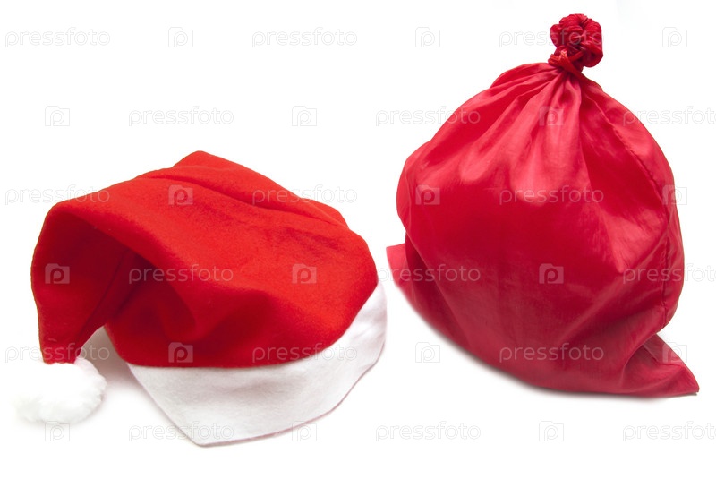 Красный мешок и колпак на белом
