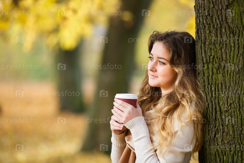 Девушка с кофе в парке