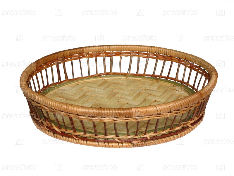 Плетенная ваза для хлеба на белом фоне