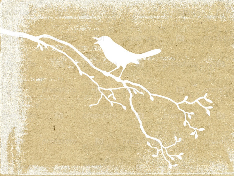 Птица на ветке, нарисованная белой краской на картоне