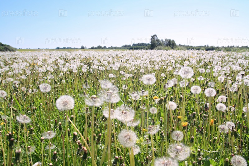 Поле белых одуванчиков