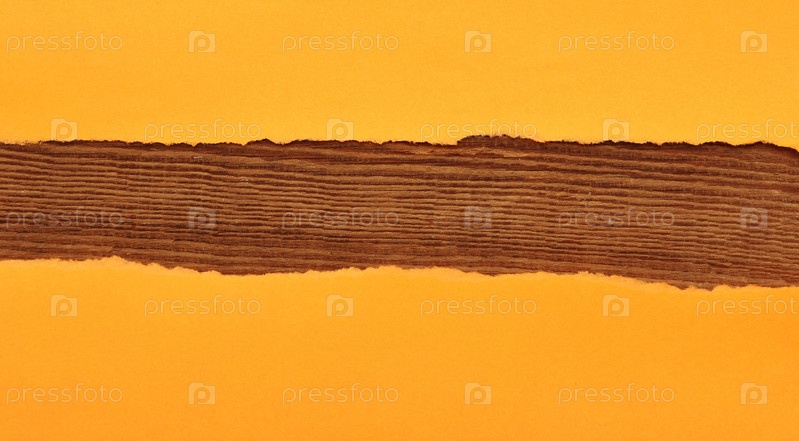 Порванная оранжевая бумага на деревянном фоне