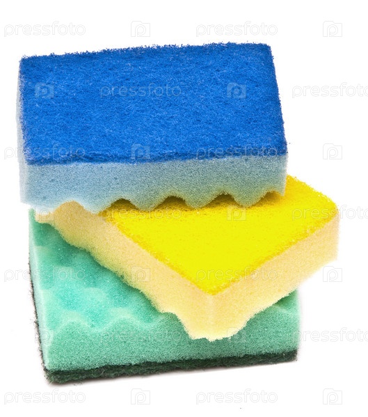 Стопка хозяйственных губок на белом фоне