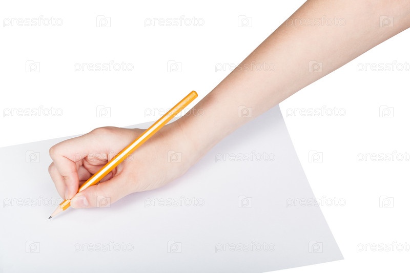 Рука пишет на деревянные графитный карандаш на бумаге