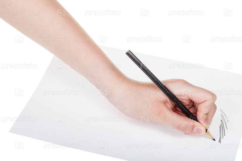 Рука рисует деревянные черный карандаш на бумаге