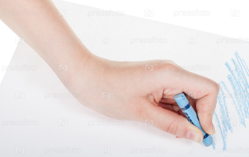 Рука рисует синим карандашом на листе бумаги