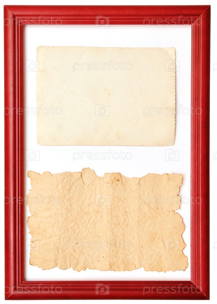Старые листы бумаги в деревянной рамке на белом фоне