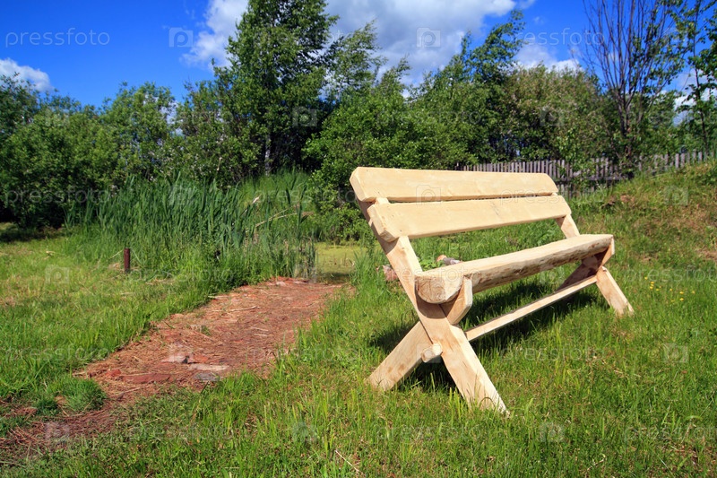 Деревянная скамейка в летнем парке