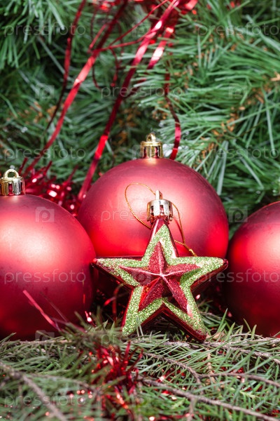 Красные елочные игрушки