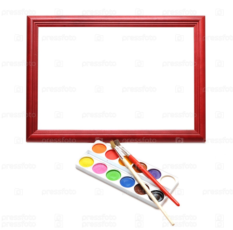 Рамка для фотографии и краски на белом фоне
