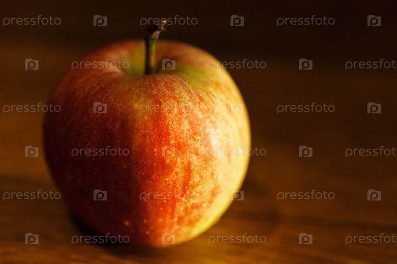 Яблоко на деревянном столе