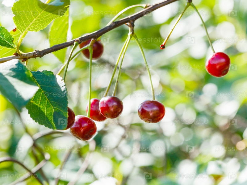 Ветка с несколькими красной вишни крупным планом