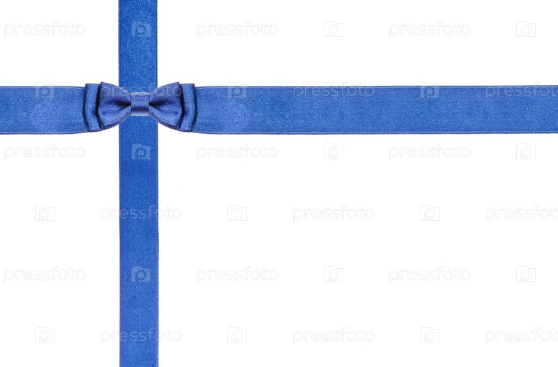 Синий атласный бант и ленты