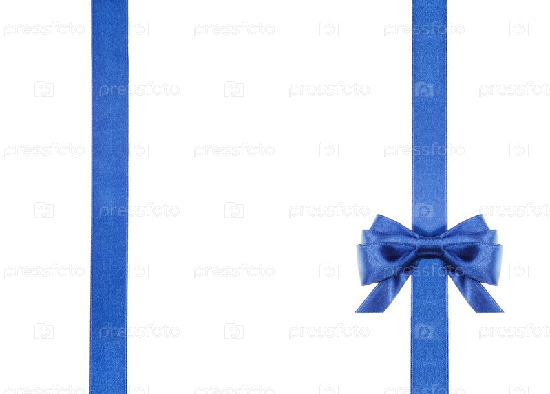 Синий атласный бант и ленты