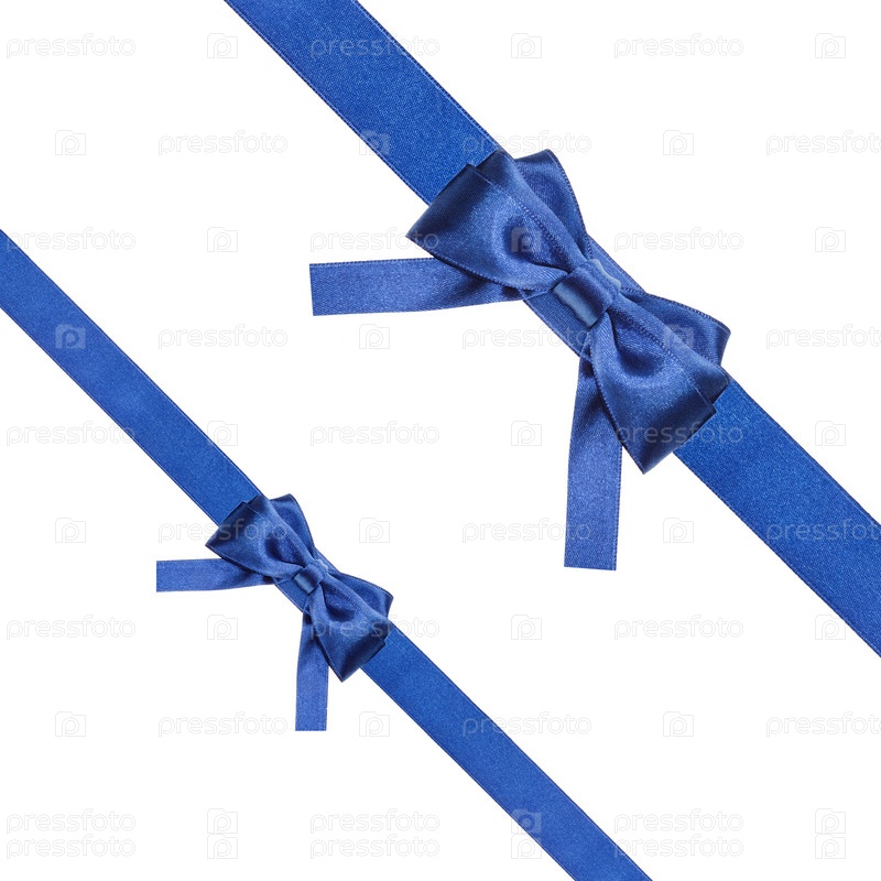 Синий атласный бант и ленты